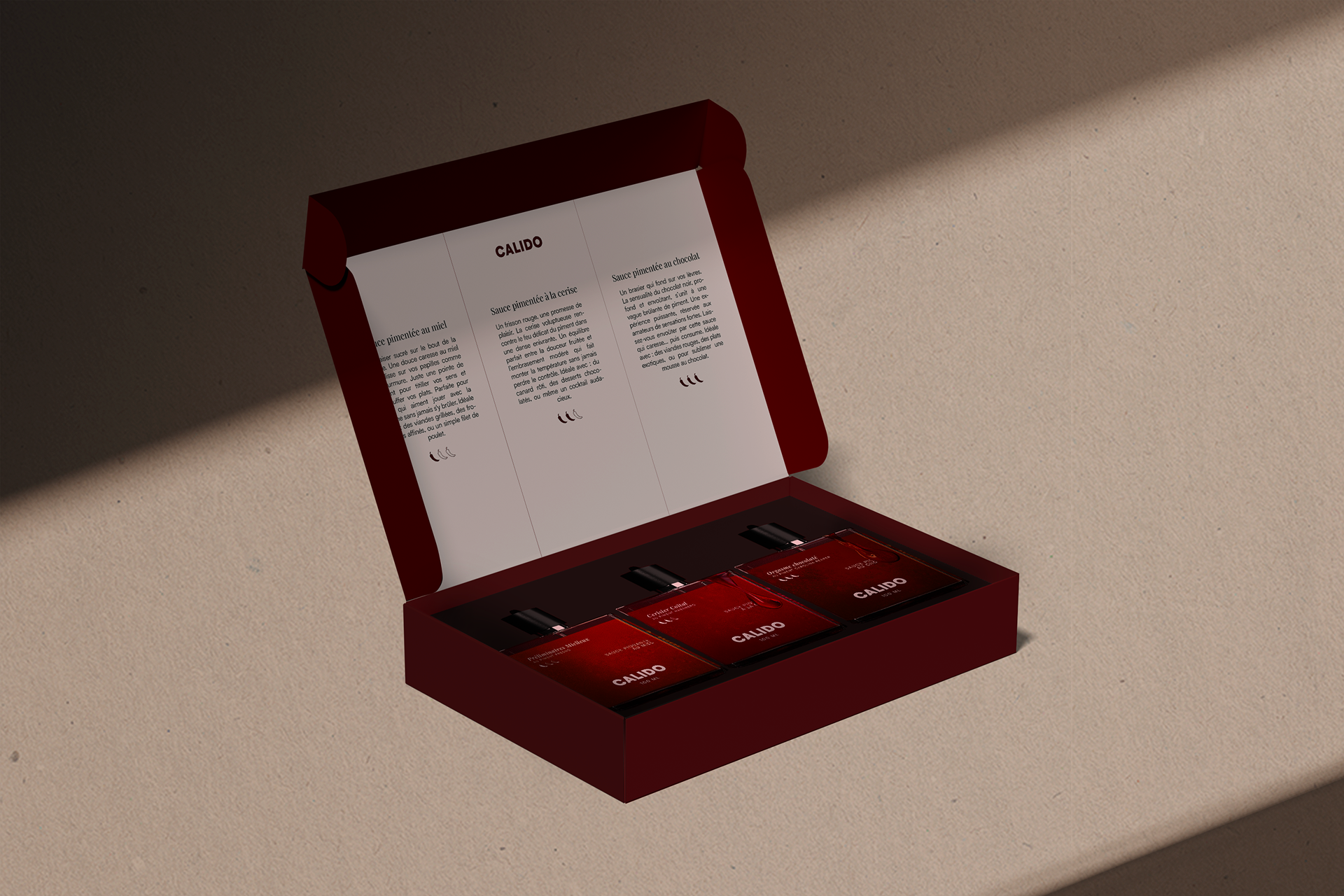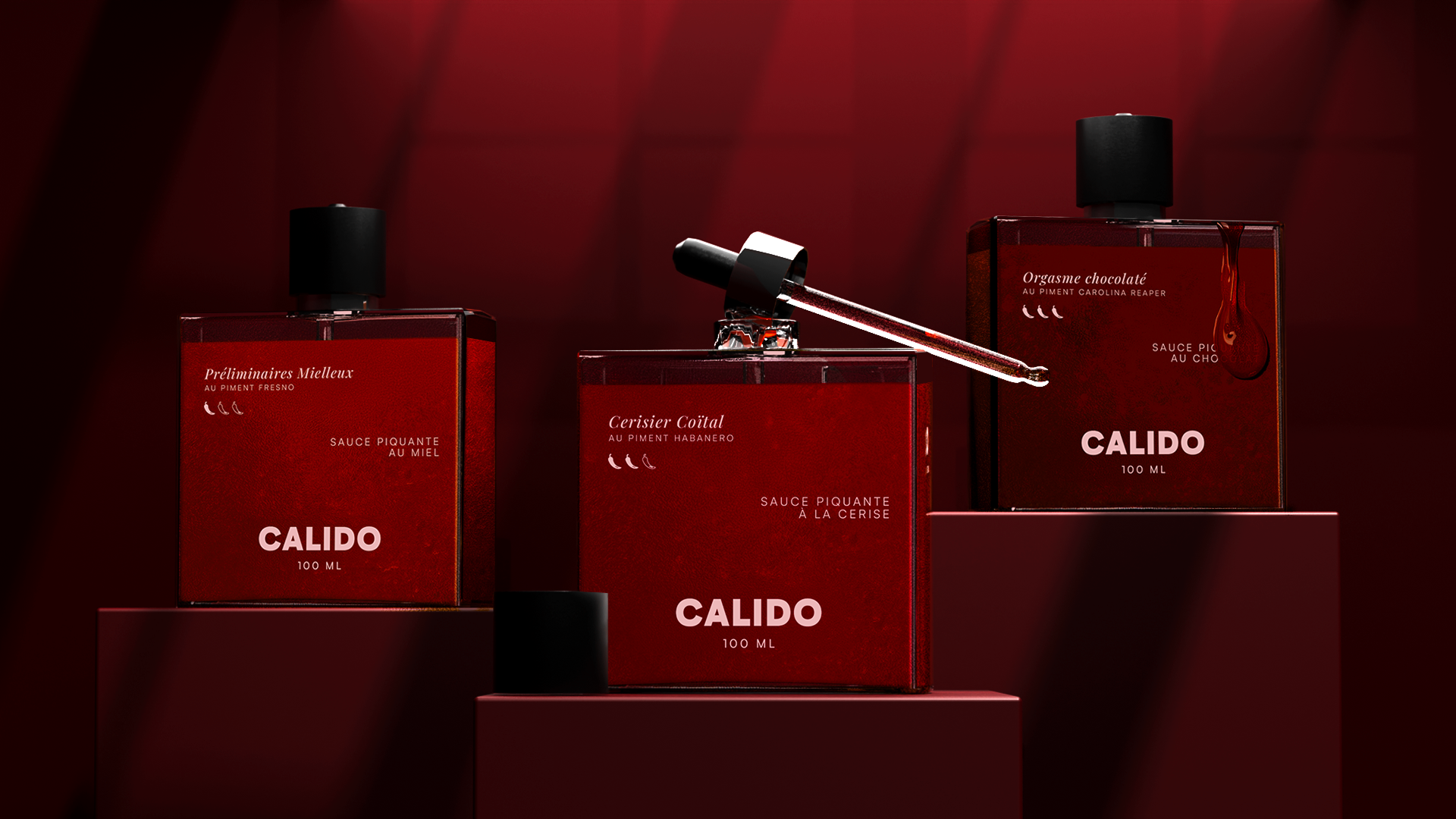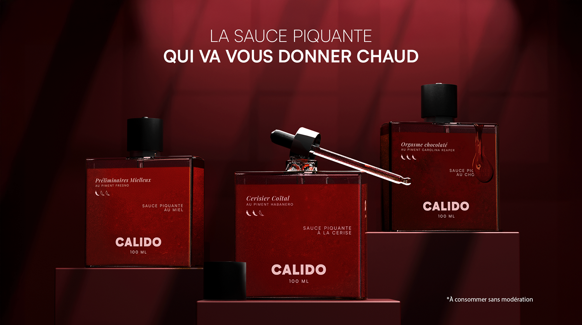 La sauce qui fait monter la température. Marque de sauces piquantes premium, Calido mêle feu, saveurs et sensualité. Connue pour son caractère aphrodisiaque, elle joue avec les sens et les aliments, dans un univers à la fois gourmand et suggestif. Cerise, chocolat, miel… Chaque recette explore des ingrédients réputés pour éveiller les désirs et attiser la curiosité. Plus qu’une sauce, une expérience sensuelle à déguster.