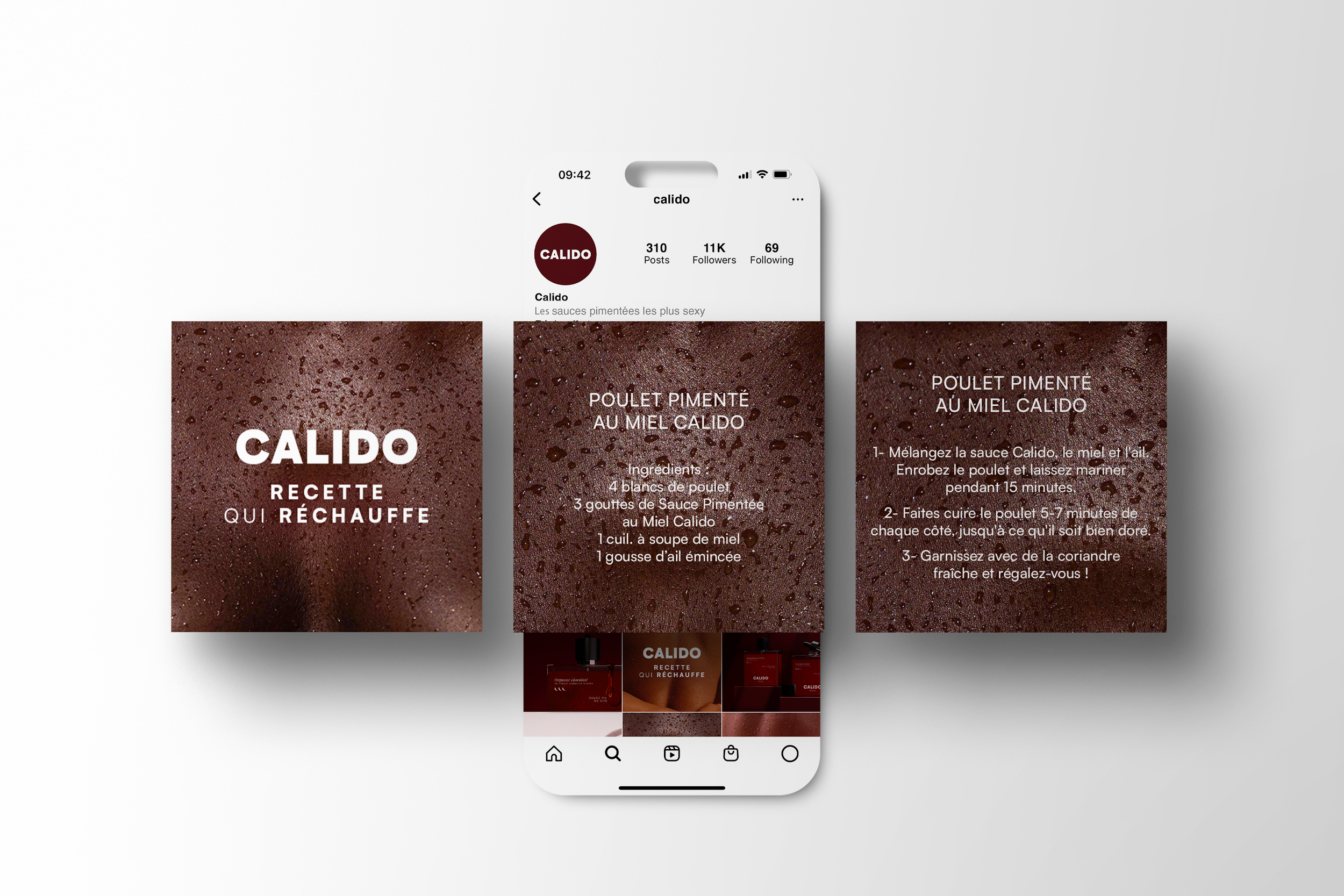 Entre textures de peau et aliments brûlants, découvrez nos recettes, nos exclus et toute l’intensité Calido, à fleur de corps… et de bouche.